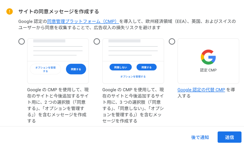そのあとに出てきたのが、サイトの同意メッセージを作成するという画面でした。
