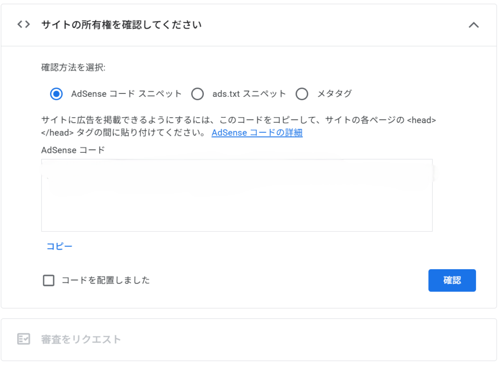 サイトを追加すると、次は所有権確認の画面が出てきました。